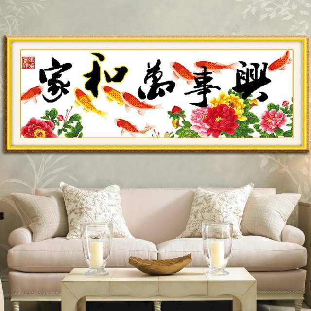 近几年,用十字绣挂画来装饰家庭墙面的情况,我们仍然屡见不鲜。他们一方面是为了让自己的“手作艺术”有一个展示的空间,另一方面也寄托了某种寓意或期望,比如:家和万事兴、旭日东升、鸿运当头......
